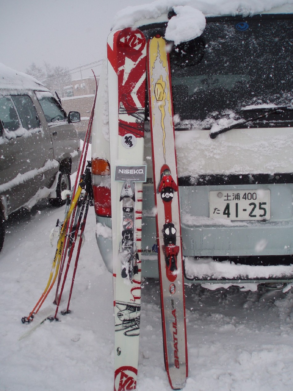 今日はポントゥーンを試乗したのですが二セコの深い雪では最高の浮力でした、スピードに乗りマッシュを飛んでいきます、ランディングのショックも柔らかく、コントロールしやすいのです、ゲレンデもR30m代のでかいラインでカービングも出来ます、とっても欲しくなってしまった1台なのです。
